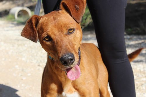 Diesen sehr fröhlichen, aufgeschlossenen, lustigen, handlichen Gesellen entdeckten Tierheimmitarbeiter eines Morgens angetüdelt am großen Tor, offenbar wollte sein Besitzer in nicht mehr haben und hat ihn des nächtens semielegant entsorgt. Schlimm, für den so in die Menschen verliebten, verkuschelten Teo und andererseits vielleicht auch sein großes Glück, denn bei der gewissenhaften Kontrolle während der Aufnahme ins Tierheim wurde doch tatsächlich im Blutbild gleich mal ein Leishmaniosekontakttiter festgestellt. Teo war äußerlich vollkommen symtomlos und dennoch wurde sicherheitshalber der Zufallsbefund prophylaktisch therapiert. Wäre doch einfach zu schade, wenn irgendetwas dem glücklichen Teo die Laune verhageln würde und das kleine Antidepressivum nicht mehr voller Tatendrang in jeden neuen Tag starten würde, den der liebe Gott werden lässt.