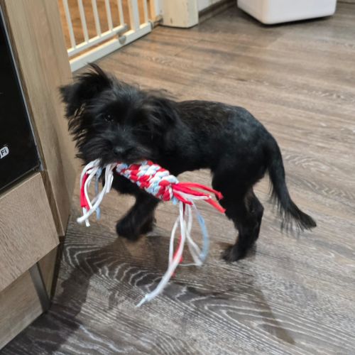 Toto ist stubenrein und kann eine Weile alleine Zuhause die Stellung halten.