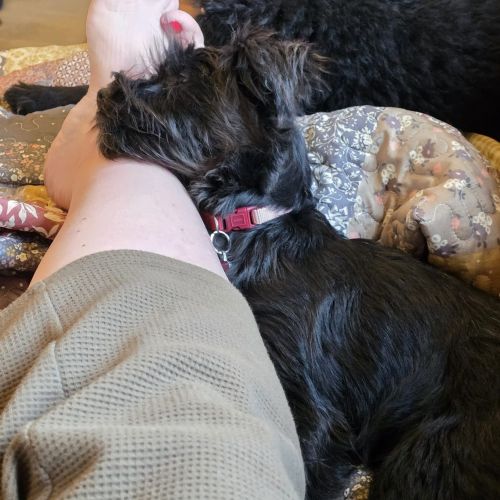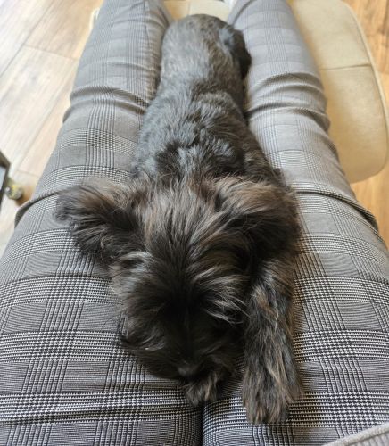 Akira mag gerne nah bei ihren Menschen sein, ohne permanent auf dem Schoß hocken zu wollen. Am liebsten ist es ihr, wenn alle zusammen eben ihren eigenen Kram machen und Akira dazwischenfummelt und Akirakram macht. Natürlich wird Akira auch gerne gestreichelt und freut sich wie ein Schnitzel, wenn jemand freundliche Worte an sie richtet und sich mit ihr beschäftigt, aber das muss keine 24/7 1:1 Betreuung sein.