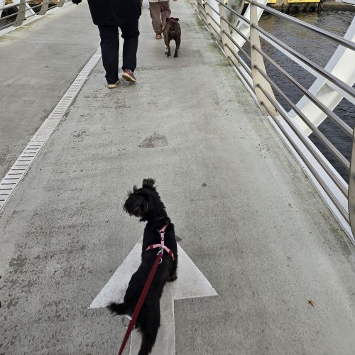 Unterwegs ist Via eine tolle, bewegliche, interessierte Begleiterin. Sie geht prima an der Leine, "bleiiiiiibt" schon artig für einen Moment stehen oder sitzen, wenn man sie geparkt hat und lässt zwei- wie vierbeinige Passanten kommentarlos ihrer Wege ziehen. Wird Via von einem Giftgnom garstig angepöbelt reagiert sie gelassen und tippelt einfach vorbei.