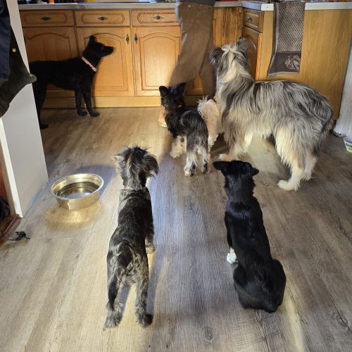 Amaia ist tüchtig am Menschen orientiert und zeigt sich anhänglich und folgsam. Hat sie sich ausgetobt, dackelt sie mit dem Kopf in Komforthöhe neben ihrem Frauchen her und "unterhält" sich lieber, als das sie tiefe Löcher buddelt oder Blödsinn macht. Diese Form des "Gassistreichels" hat Amaia perfektioniert, hat es doch nur Vorteile. Amaia bekommt Zusatzkuschlen und Frauchen warme Hände. Insgesamt ist Amaia ein sehr lieber und unkomplizierter Hund, Mantel dran, Geschirr ab, Leine um, Halsband drüber, alles kein Problem und auch ein Vollbad lässt Amaia sich wohltemperiert sehr gerne gefallen.