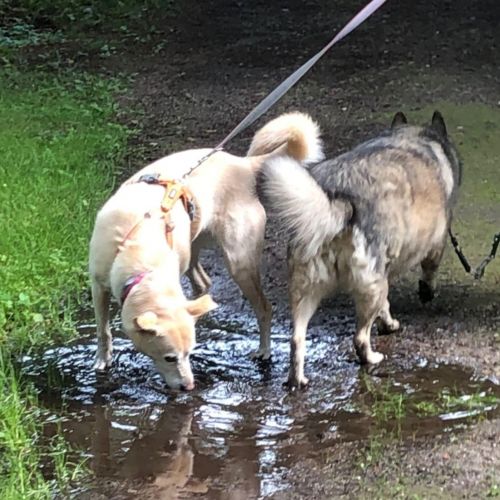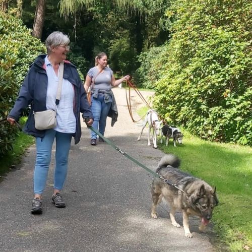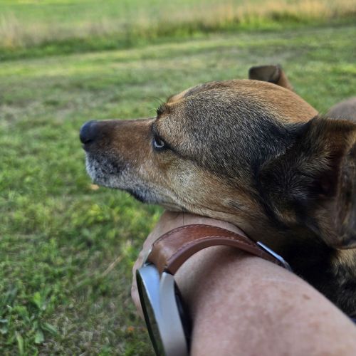 Unterwegs ist Akira eine engagierte, interessierte, agile Begleiterin und wandert munter durch Feld, Wald und Flur. Akira geht sehr manierlich an der Leine und verwurstelt sich auch wenn mehre Hunde geführt werden nicht im Leinensalat. Freilaufen kann sie natürlich am allerbesten und wird nicht müde einen als schon "sicher" zu bezeichnenden Rückruf vorzuführen. Akira hat ein klein wenig Jagdtrieb, der nicht recht mit ihren körperlichen Eigenschaften korrespondieren mag, da Akira weiß, dass sie im Leben keinen Hasen fangen wird, unternimmt sie in der Regel nicht mal den Versuch loszudüsen. Eigenes Geflügel zb behandelt Akira pfleglich. Akira wird nicht müde ihr Frauchen auf Zeit anzuhimmeln und sich über kleine Aufträge zu freuen, für deren Erledigung (stets in Rekordzeit) sie natürlich großes Lob kassiert.
