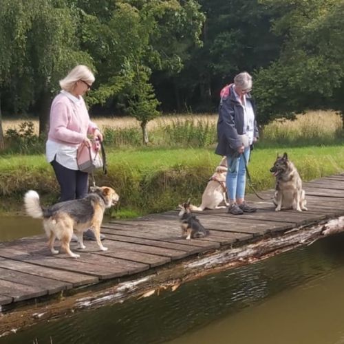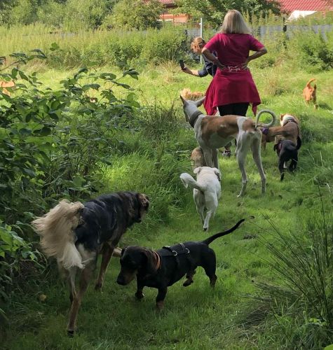 Begegnungen mit anderen Hunden und Passanten gestalten sich unaufgeregt.