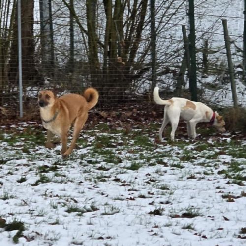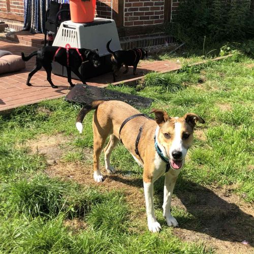 Amina teilt ihr Zuhause auf Zeit mit vielen weiteren Hunden und verträgt sich mit allen Mitbewohnern anstandslos. Sie mag gerne spielen und toben, kann gut verstehen, dass auch die anderen mal an der Reihe sein und gestreichelt werden möchten und wenn die Keksi verteilt werden, ist für Amina sonnenklar, dass sie nur eins bekommt.