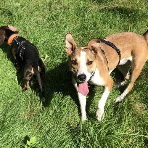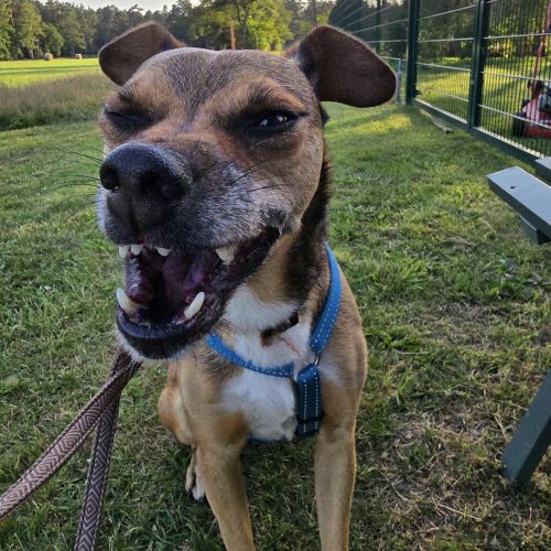 Wir wünschen uns für die freundliche, anhängliche, lachende Menschenfreundin ein tolles Zuhause bei netten Leuten, die auch gerne im Wald rumbutschern und denen ein grinsender Spaßvogel mit Familiensinn gerade noch gefehlt hat. Aldona kann ein Zweithund werden, bevorzugt bei einem Artgenossen in ihrer Kragenweite und das Vergesellschaften mit einem Kätzchen dürfte kein Problem darstellen.