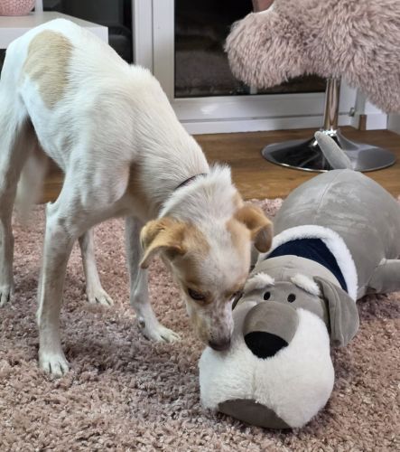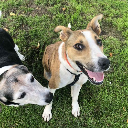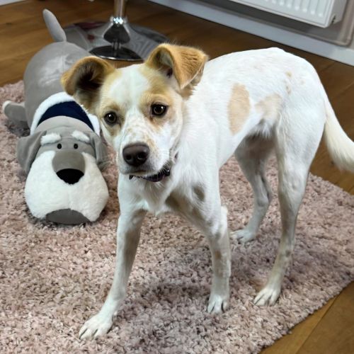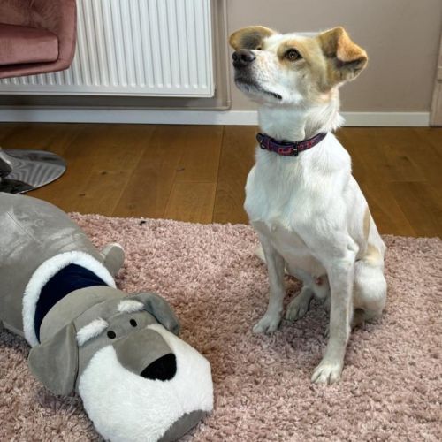 Wir wünschen uns für die lebensfrohe, abenteuerlustige, verspielte Viata ein tolles Zuhause bei Menschen mit Humor, denen eine kleine, gescheckte Clownin gerade noch zum großen Hundeglück gefehlt hat. Via kann natürlich auch gerne ein Zweithund bei einem passenden Spielkameraden werden, zu ihrem Verhältnis zu Katzen ist nichts bekannt.