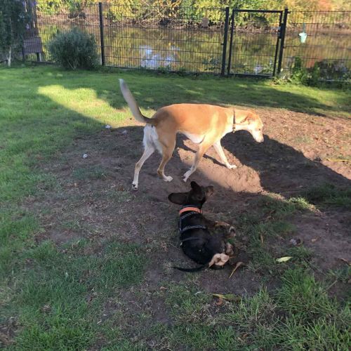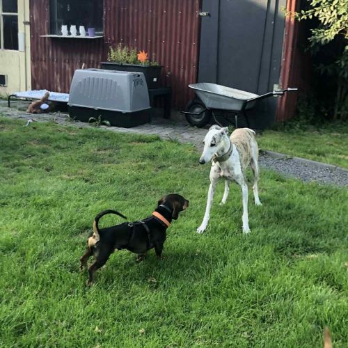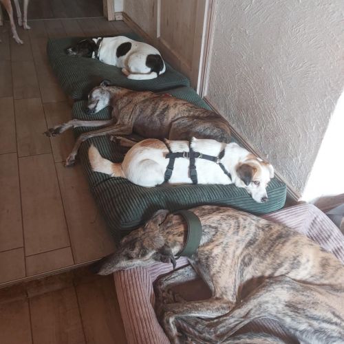 Amaia teilt ihr Zuhause auf Zeit mit vielen anderen Hunden und kommt in der bunten Truppe gut zurecht. Sie ist eine beliebte Spiel- und Sozialpartnerin und eckt nie ernsthaft an. Die eher zierliche Galga mag gerne Kontaktliegen und Amaia mag gerne rennen und spielen, wo bei sie ebenso gerne mit ihrer Galgofreundin rumsaust wie mit anderen Hunden spielt. Amaia neigt nicht zum Übertreiben und lässt sich, sollte es doch einmal zu bunt werden, aus dem Spiel abrufen.