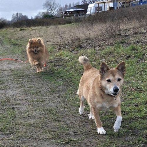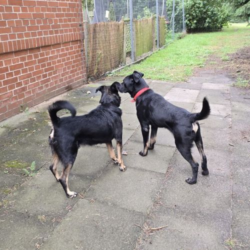 Toto teilt ihr Übergangszuhause mit vielen weiteren Hunden und kommt mit ihren Artgenossen bestens aus. Sie ist fein in der Kommunikation und unterscheidet sehr genau, wer ein junger Wilder ist und wer ein betagter Greis und entsprechend passt sie ihr Verhalten und ihre Anliegen an. Spielaufforderungen platziert sie dort, wo sie auf Gegenliebe zu stoßen versprechen, möchte sie ein Altchen überholen, rumpumelt sie ganz vorsichtig vorbei. Toto hat mühelos ihren Platz in der Gruppe gefunden und ist eine beliebte Spiel- und Sozialpartnerin.