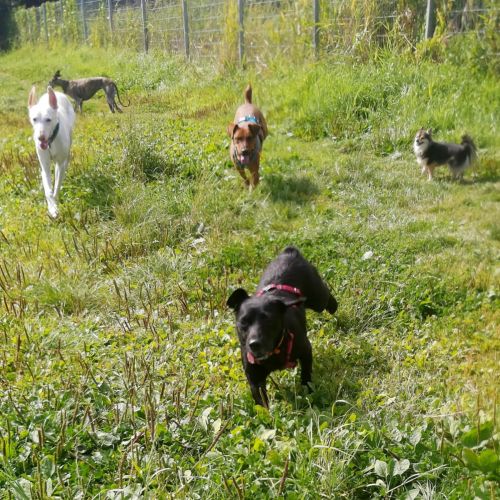 Aldona macht auch gerne Ausflüge zur Hundewiese, fremden Hunden begegnet sie freundlich und aufgeschlossen, die Butter läßt sie sich aber nicht vom Brot nehmen.