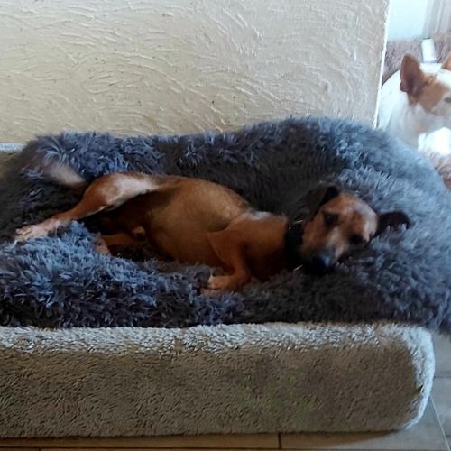 Travis ist im Haus eher ruhig, was nicht zuletzt daran liegt, dass er nach dem Tierheim nun die Kuschelkörbchen für sich entdeckt hat und immerzu voll entzücken auf weichen Kissen schlummern möchte. Travis dackelt also, ist gerade kein Hundeprogramm, gerne in ein Hundeaufbewahrungsmöbel. Travis kann schon einige Stunden alleine Zuhause bleiben, ohne etwas kaputt zu machen, ist zuverlässig stubenrein und macht keinen Lärm.