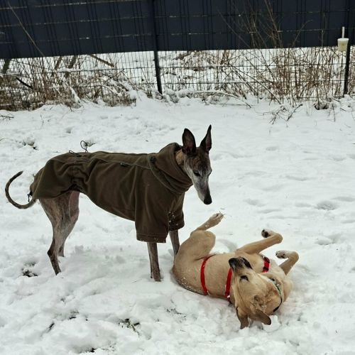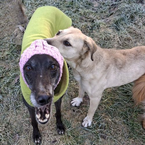Melina ist in der Gruppe eine besonders beliebte Spiel- und Sozialpartnerin und findet immer eine Freundin, die sie mit in ihr Körbchen lässt oder toben mag.