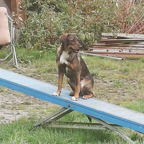 Weggeley liebt alle anderen Hunde und ist in der bunten Pflegestellentruppe äußerst beliebt. Sie ist körpersprachlich super fit und gerät so gut wie nie in Konflikte, die sie nicht selbstständig deeskalieren kann. Weggeley wird immer zuerst gefragt, wenn getobt werden soll, weil sie äußerst sportlich und sehr fair ist. Weggeley teilt auch Futter, Leckerlies und Spielzeuge mit ihren Freunden und mag gerne Kontaktliegen.
