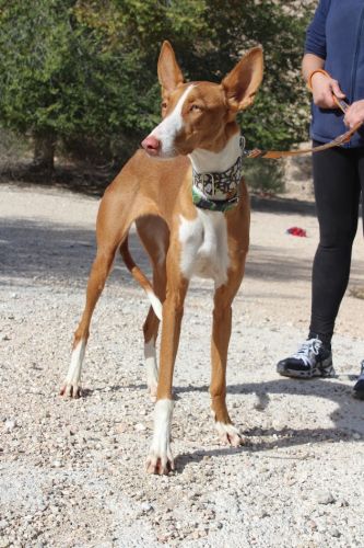 Marenas Verhältnis zu fremden Menschen ist noch von etwas Skepsis geprägt. Sie hat in ihrem bisherigen Leben noch nicht die Erfahrung machen dürfen, dass Menschen Podencos einfach mögen und musste immer auf der Hut sein bei ihrem Jäger nicht in Ungnade zu fallen. Marena ist neugierig wie eine Katze und möchte schon gerne alle Menschen kennenlernen, sie braucht hierbei aber noch Unterstützung und das eine oder andere köstliche Häppchen, damit es ihr leichter fällt über ihren Schatten zu springen. Marena ist aufgeschlossener als Alma und hat es sich zur Aufgabe gemacht ihre zurückhaltende Schwester zu coachen und im Zweifelsfall für beide einzustehen, so dass wir davon ausgehen, dass Marena in einem liebevollen Zuhause schnell "auftauen" wird.
