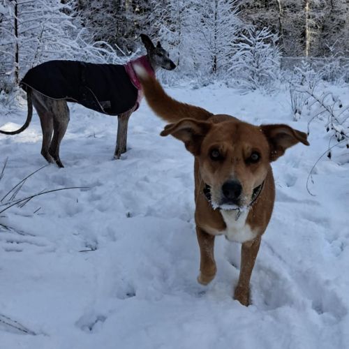 Wir wünschen uns für die freundliche, anhängliche, lachende Menschenfreundin ein tolles Zuhause bei netten Leuten, die auch gerne im Wald rumbutschern und denen ein grinsender Spaßvogel mit Familiensinn gerade noch gefehlt hat. Aldona kann ein Zweithund werden, bevorzugt bei einem Artgenossen in ihrer Kragenweite und das Vergesellschaften mit einem Kätzchen dürfte kein Problem darstellen.