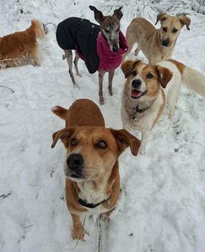 Amina teilt ihr Zuhause auf Zeit mit vielen weiteren Hunden und verträgt sich mit allen Mitbewohnern anstandslos. Sie mag gerne spielen und toben, kann gut verstehen, dass auch die anderen mal an der Reihe sein und gestreichelt werden möchten und wenn die Keksi verteilt werden, ist für Amina sonnenklar, dass sie nur eins bekommt.