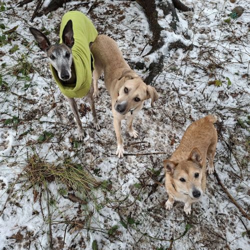 Melina teilt ihr Zuhause auf Zeit mit vielen Hunden und kommt in der bunten Truppe hervorragend zurecht. Sie ist freundlich, verspielt und großzügig ohne sich die Butter vom Brot nehmen zu lassen. Melina teilt Leckerlies, Spielzeuge, Kaustangen und Aufmerksamkeit anstandslos, sie ist schließlich ein Ehrenhund.
